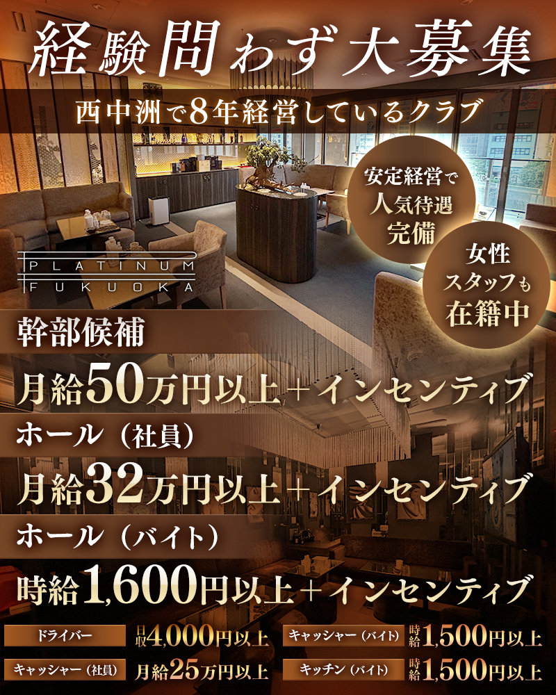 <“安心”で選びませんか?>西中洲の高級店で綺麗な職場で働けます◇風営法順守を徹底◎良客層をお約束!