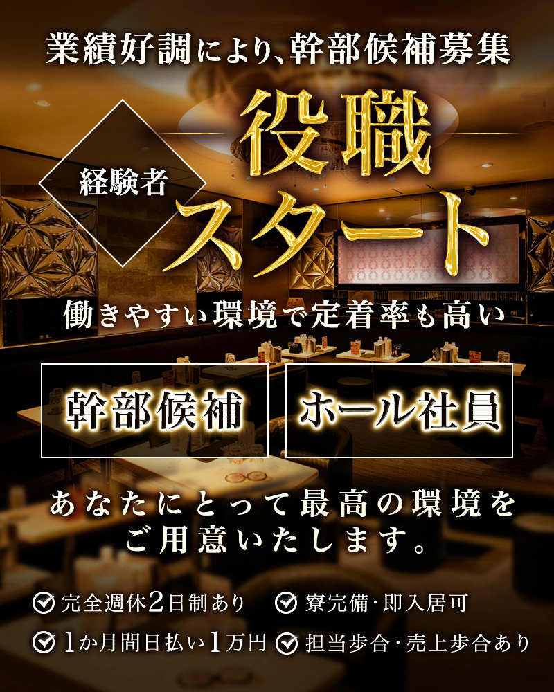 【働くなら、稼げる有名店へ】ホール社員38万~!週休2日&寮完備◎柔軟性の高い働き方で女性黒服活躍中
