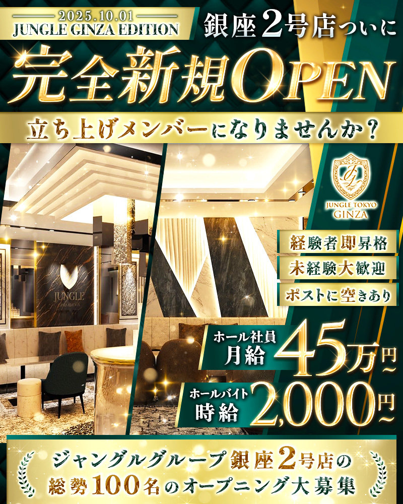 【銀座2号店10/1新OPEN】オープニング募集◎空きポスト多数・採用枠拡大⇒未経験でも稼ぐチャンス